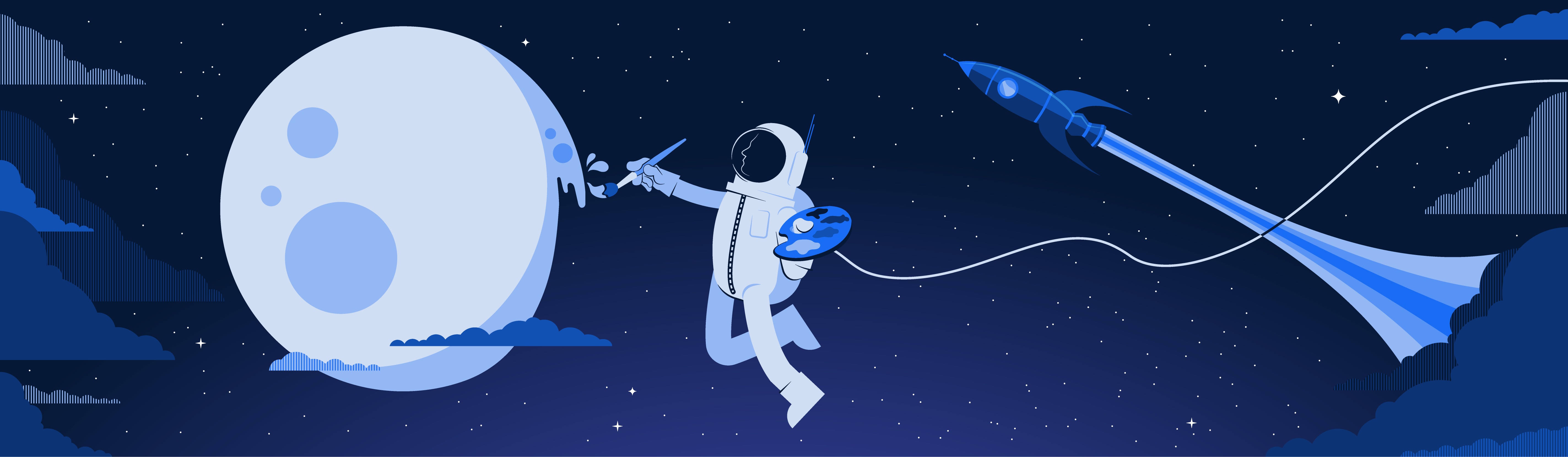 The illustration development process started with Pete giving me a concept like “Analytics” or “Team,” which I would then further ideate on, creating a custom illustration. My semi-surreal, colorful designs ended up really leaning into their “no idea too strange” philosophy. I created the compositions below in Adobe Illustrator.