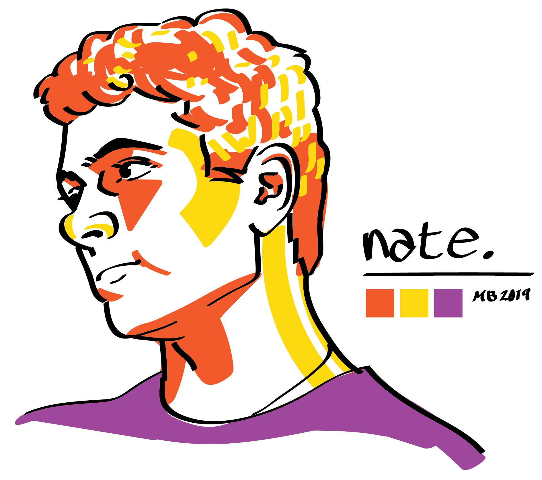Illustration based on a photo of one of my friends. I wanted to practice using custom chiseled Illustrator brushes and experimenting with pop art-y colors.